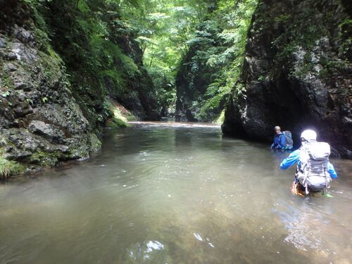 エリア:奥多摩 丹波川周辺(2015/6/27-28) 毎年恒例の渡渉訓練、今年は定番エリアのローテーションで奥多摩の丹波川へ。 総勢約30名の大所帯、午前はお決まりのスクラム渡渉、簡易三角法、末端交換三角法など各種技術の確認。午後は実践遡行で丹波川本流と…